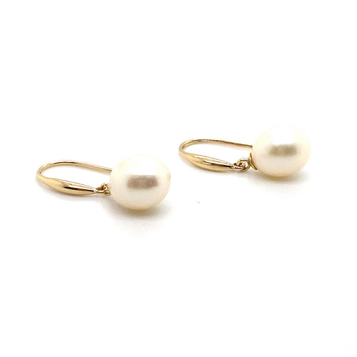 9CT YELLOW GOLD TEAR DROP FRESHWATER CULTURED PEARL EARRINGS