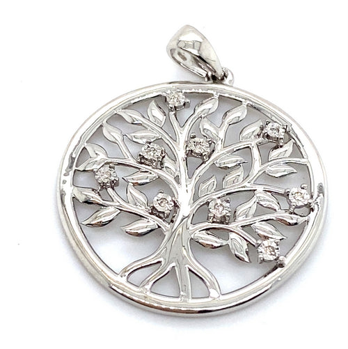 9CT WHITE GOLD DIAMONDS SET IN TREE OF LIFE PENDANT