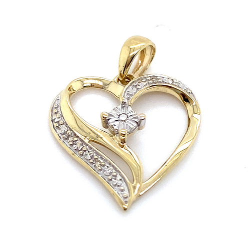 9CT YELLOW GOLD DIAMOND SET IN HEART SHAPE PENDANT