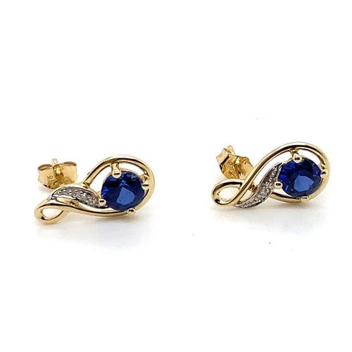 9CT YELLOW GOLD CREATED SAPPHIRE & DIAMOND EARRINGS