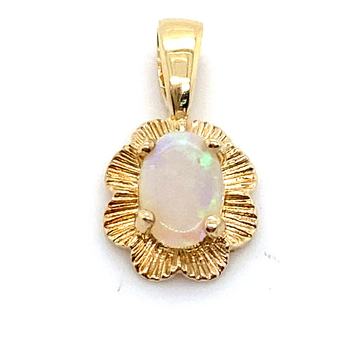 9CT YELLOW GOLD LIGHT OPAL SET IN FLOWER PATTERN PENDANT