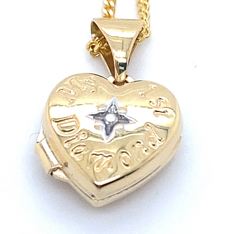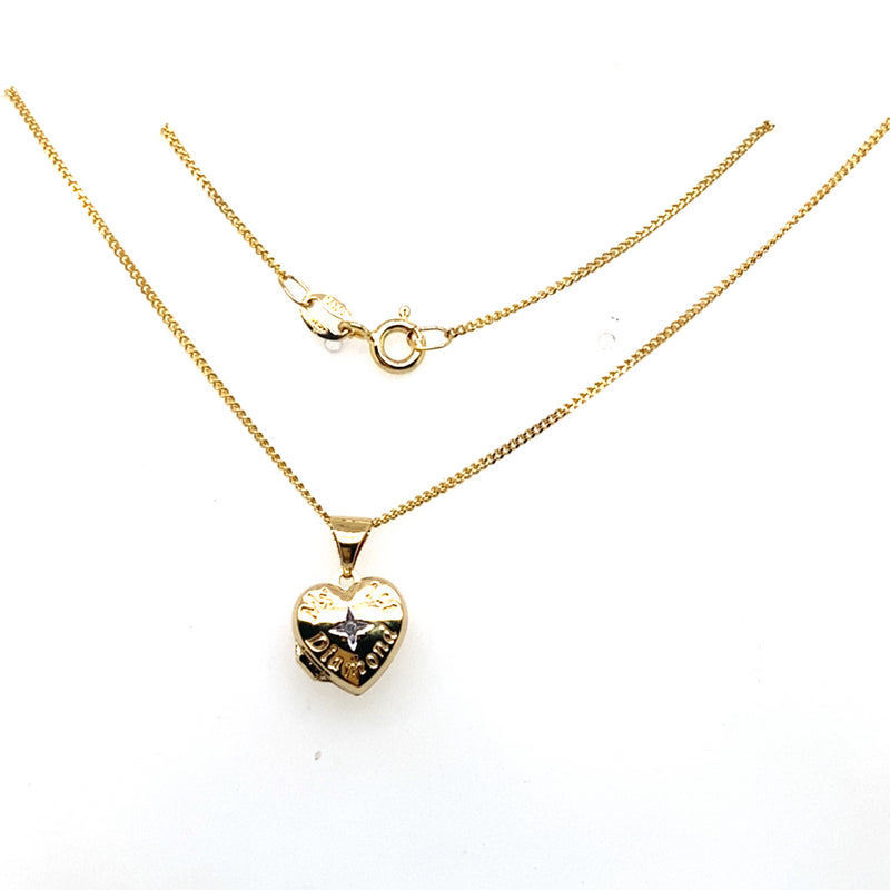 9CT YELLOW GOLD 40CM CURB LINK CHAIN WITH MY 1ST DIAMOND LOCKET