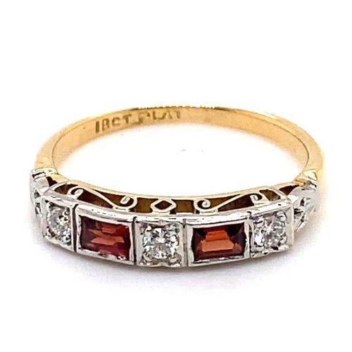 18CT YELLOW GOLD & PLATINUM GARNETS & DIAMOND DRESS RING VALUED @ $2099
