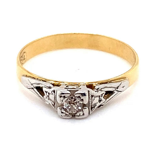 18CT YELLOW & WHITE GOLD EUROPEAN CUT DIAMOND DRESS RING VALUED @ $1399