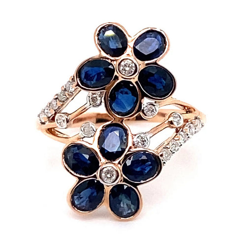 14CT ROSE GOLD SPLIT SHOULDER SAPPHIRE & DIAMOND DRESS RING VALUED @ $3299